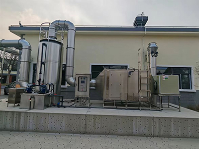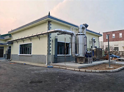 该污水泵站位于上海奉贤区,主要收集进水阀门井,格栅井口和格栅机罩,污水泵站提升泵房等场合产生的恶臭气体,采用不锈钢方管框架和pc透明耐力板制作收集密闭罩,采用304材质不锈钢收集风管及末端除臭装置,除臭工艺采用微纳米气泡增强填料喷淋洗涤工艺预处理去除大部分高浓度恶臭易溶于水的恶臭组分,再组合高能离子氧化和干化学吸附复合滤料深度处理剩余低浓度恶臭异味组分,除臭效果能稳定、可靠、安全的满足上海恶臭污染物排放标准。