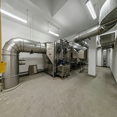 公司25年为上海浦东御桥地区某个地面景观公园地下大型雨水调蓄池系统提供整体的收集、臭气治理装置及控制系统,收集地下雨水调蓄池内臭气、地下夹层间臭气及进水阀门井和格栅井臭气,透气井道臭气,格栅机采用不锈钢框架PC透明耐力板密闭罩密闭,全部采用316材质风管及304材质加内壁防腐涂层制作,设备采用一体话卧式结构设计,适合地下夹层设备间低矮空间,除臭工艺采用离子新风设备间净化及末端负压收集集中组合工艺除臭系统,因为地面是景观休闲公园和周边是办公写字楼,设备要求除臭效率高,运行稳定,设备已经运行,取得了良好效果。